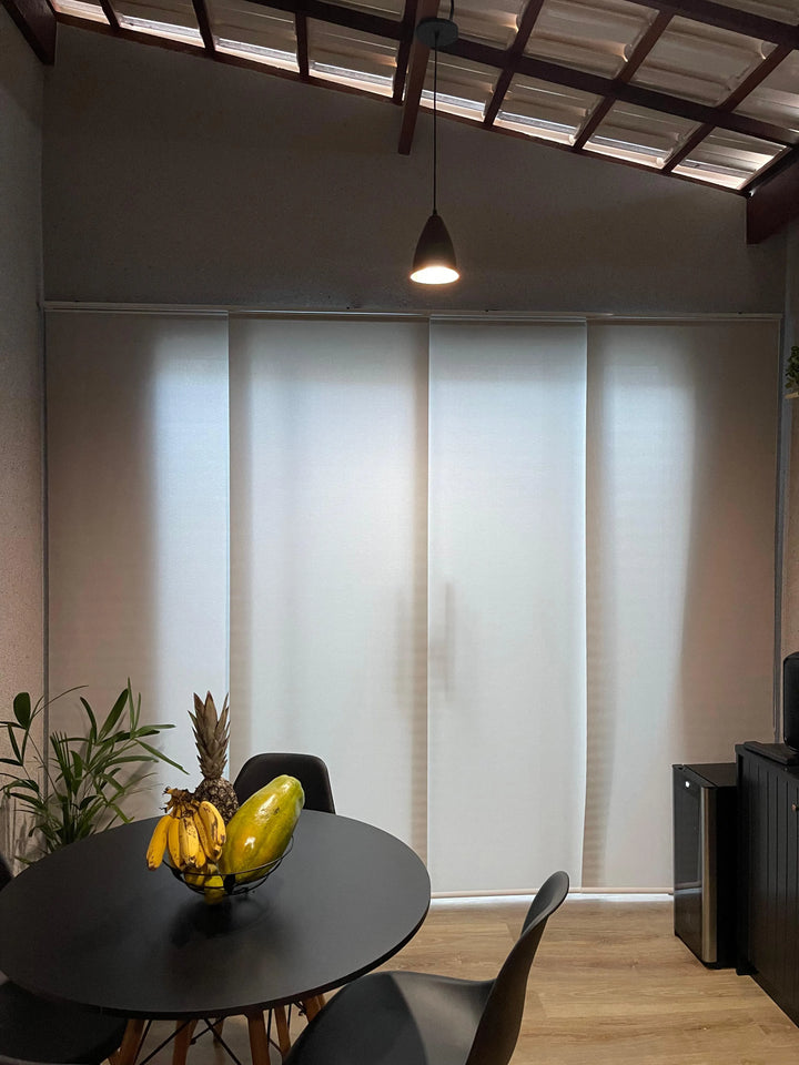 A Cortina Painel Tela Solar 1% Cinza foi criada para quem busca um visual moderno e limpo, sem abrir mão da funcionalidade.
