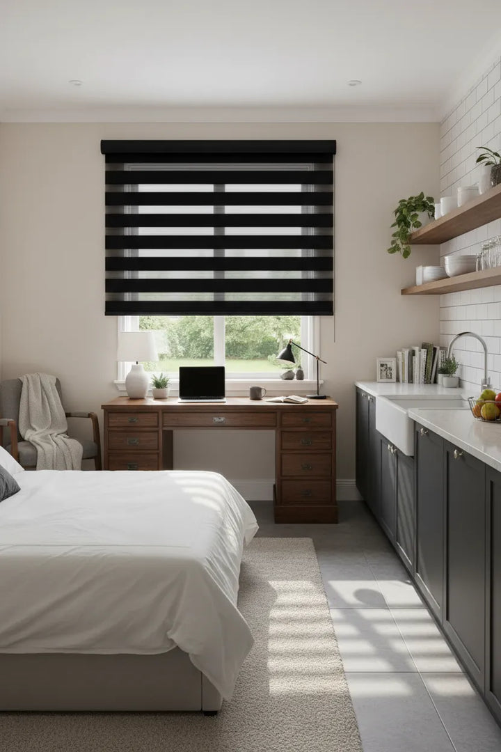 A persiana Double Vision é indicada para salas, corredores, quartos e espaços corporativos que desejam aproveitar a entrada de luz natural difusa sem abrir mão da privacidade.