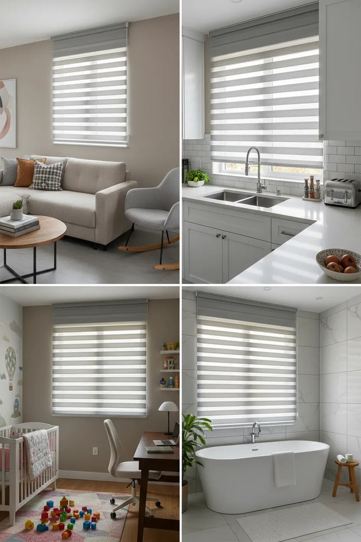 A persiana Double Vision é indicada para salas, corredores, quartos e espaços corporativos que desejam aproveitar a entrada de luz natural difusa sem abrir mão da privacidade.