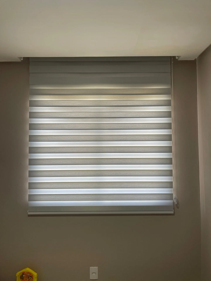 Suas faixas horizontais sobrepostas parecem flutuar entre duas telas perfeitamente alinhadas, garantindo um controle inteligente de luminosidade e visibilidade — ideal para quem busca elegância e conforto no dia a dia.